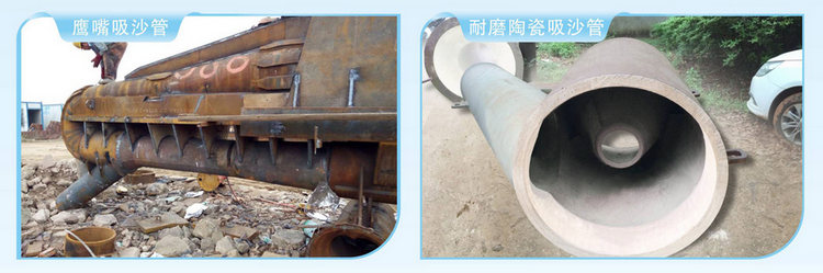 吸式抽沙船的整體構造基本都是錳鋼戓高鉻鋼,而且在河水復雜環(huán)境中工作,吸沙船吸沙管道受沙石混合物沖刷磨損嚴重,尤其是吸沙管老鷹嘴,磨損十分嚴重,針對此工況,推薦使用我公司耐磨陶瓷(ZTA)作為內襯防磨層吸沙管道。