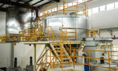 壓力噴霧干燥的原理是空氣經過濾和加熱后進入干燥器頂部的空氣分配器,使得熱空氣呈螺旋狀均勻地進入干燥室。料液經塔體底部的高壓噴槍霧化成極霧狀液珠,與熱空氣并流接觸,在極短的時間內可干燥為成品。